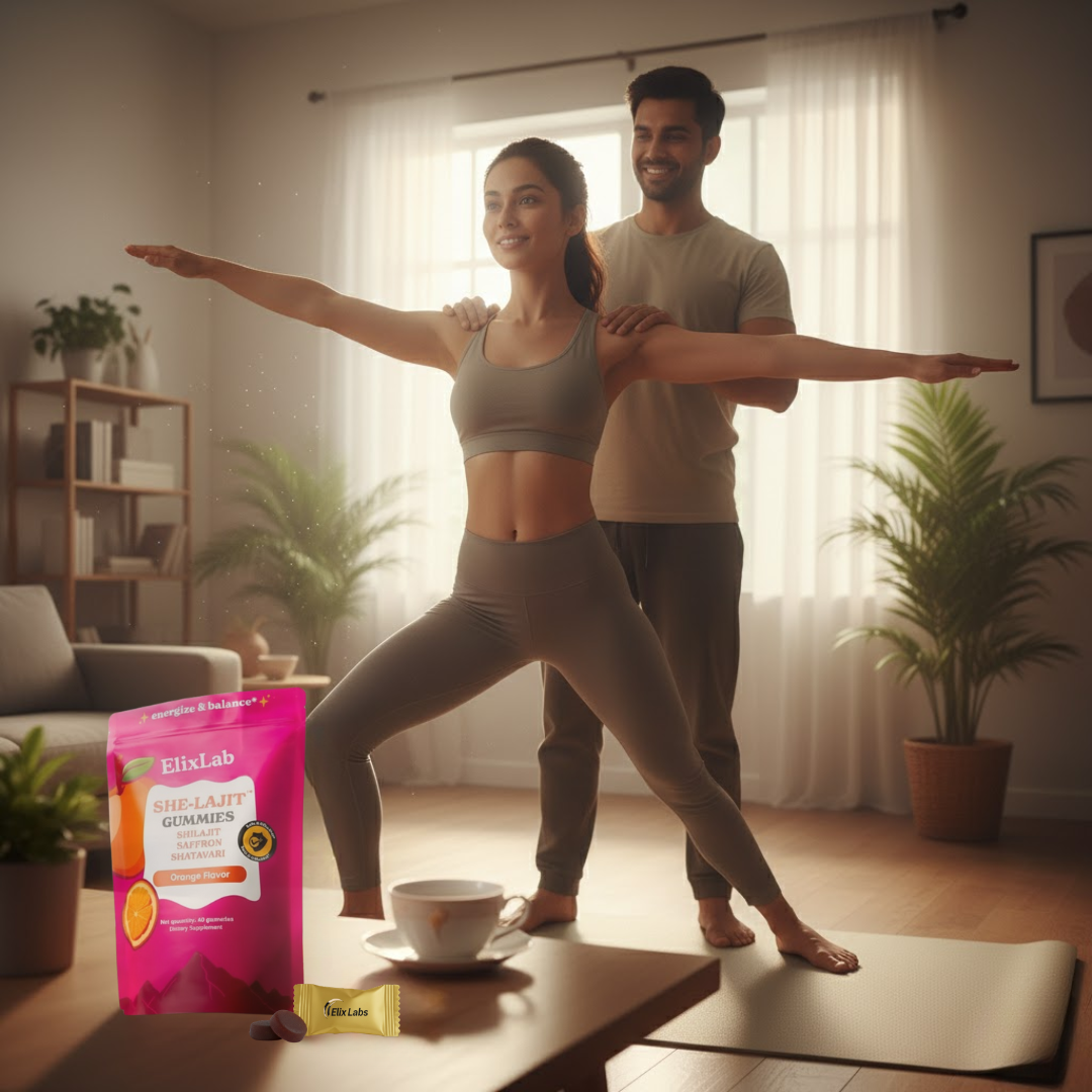 Tired of hearing "Not tonight, dear?" Stress, fatigue, and hormonal shifts steal your spark. Rediscover the vitality, desire, and emotional connection that make intimacy effortless with nature's most intelligent adaptogenic blend — Himalayan Shilajit, Shatavari & Saffron.
